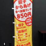 真紅ののぼり旗がまばゆいです。のぼり旗を立てる立地によっては、ただシンプルに文字を置くことも効果があると思います。